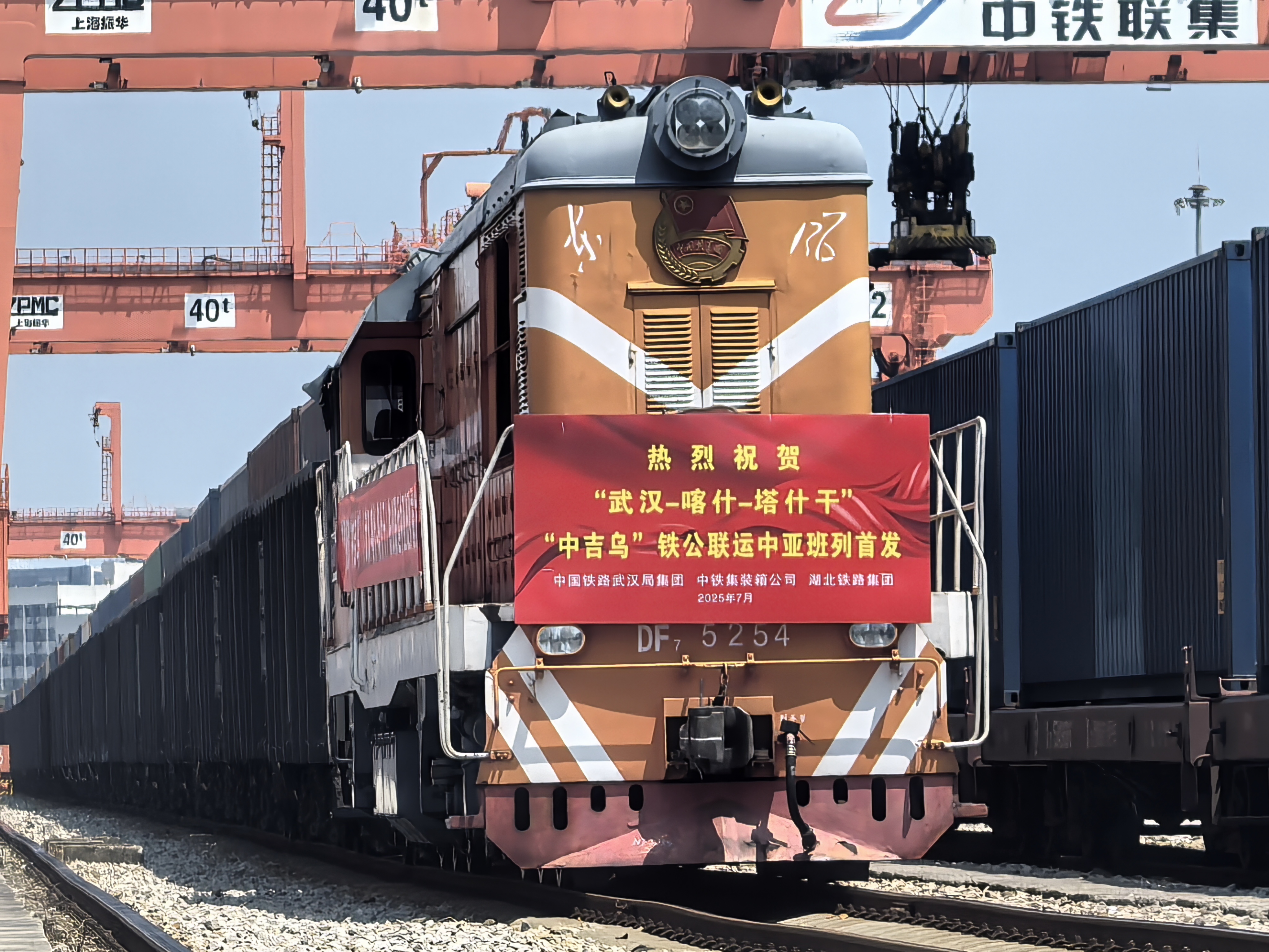 湖北首趟“中吉乌”铁公多式联运中亚班列开行